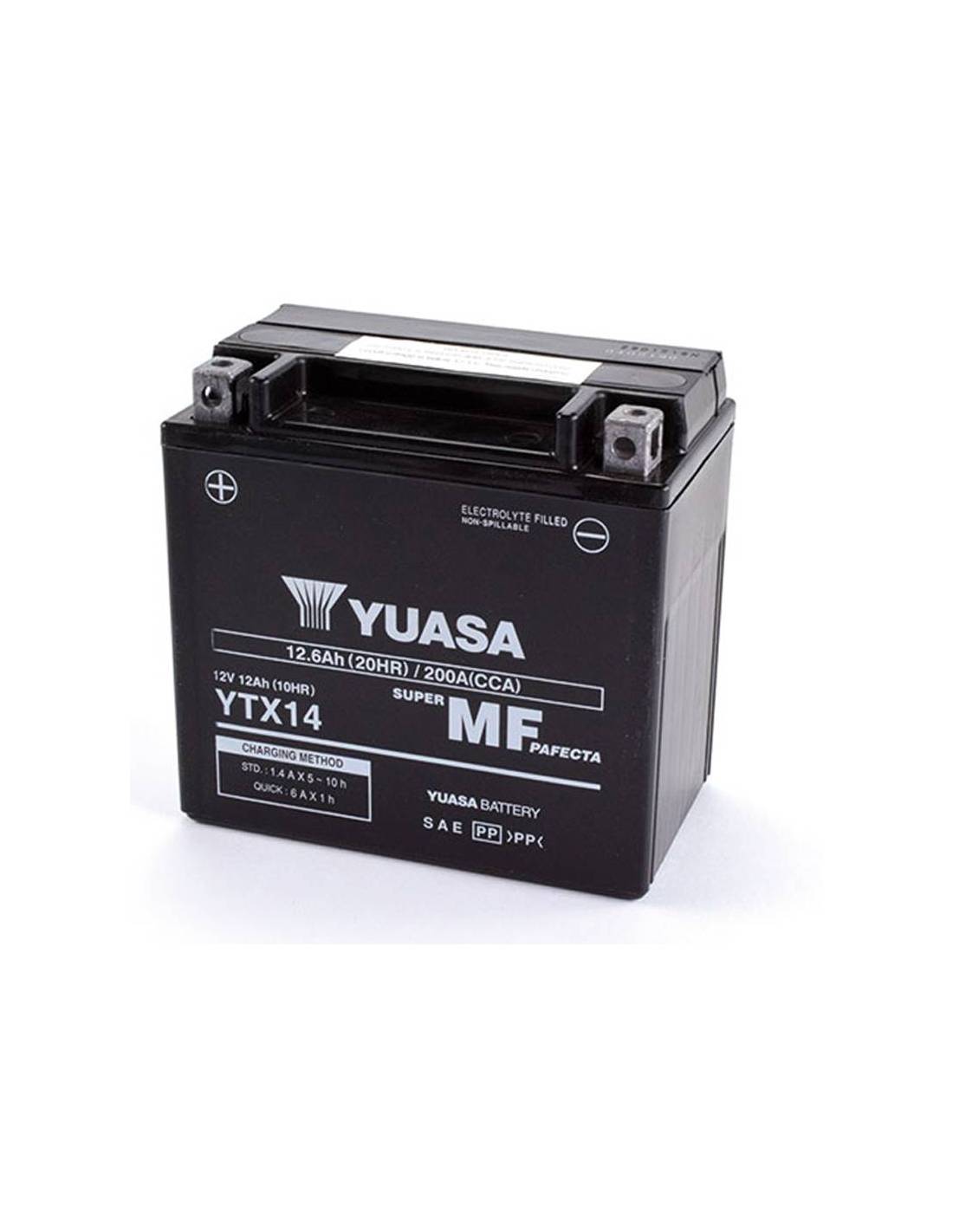 La batería Yuasa YTX14-BS de 12V y 12Ah se envían totalmente selladas y activadas listas para instalar en la moto