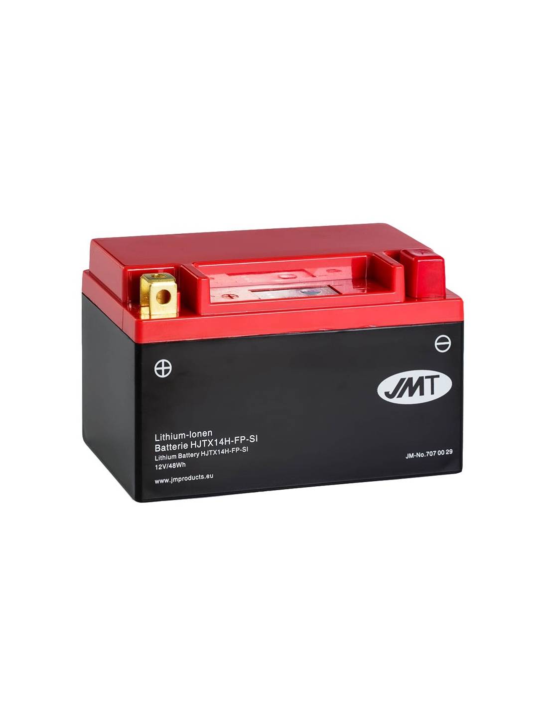 Batería JMT HJTX14H-FP 12V y 48W, especial para motocicletas o scooter. Reduce peso, aumenta potencia, y evita derrames.