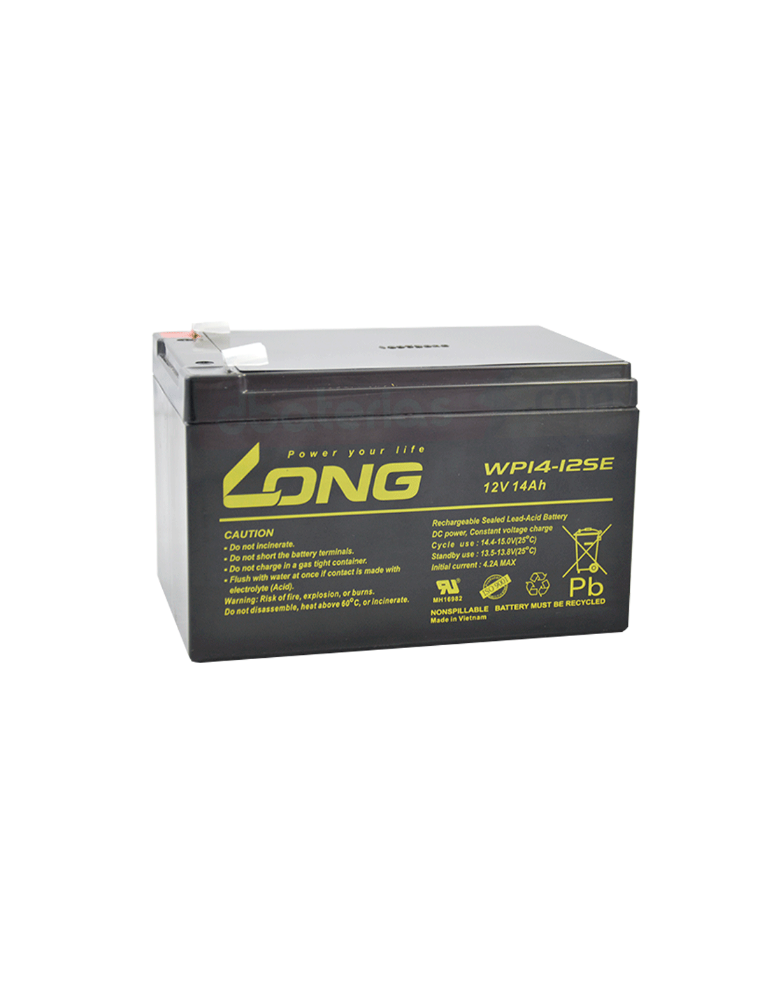 Batería de alta potencia LONG recambio original para 12V. y 14Ah. en tecnología AGM 100% hermética