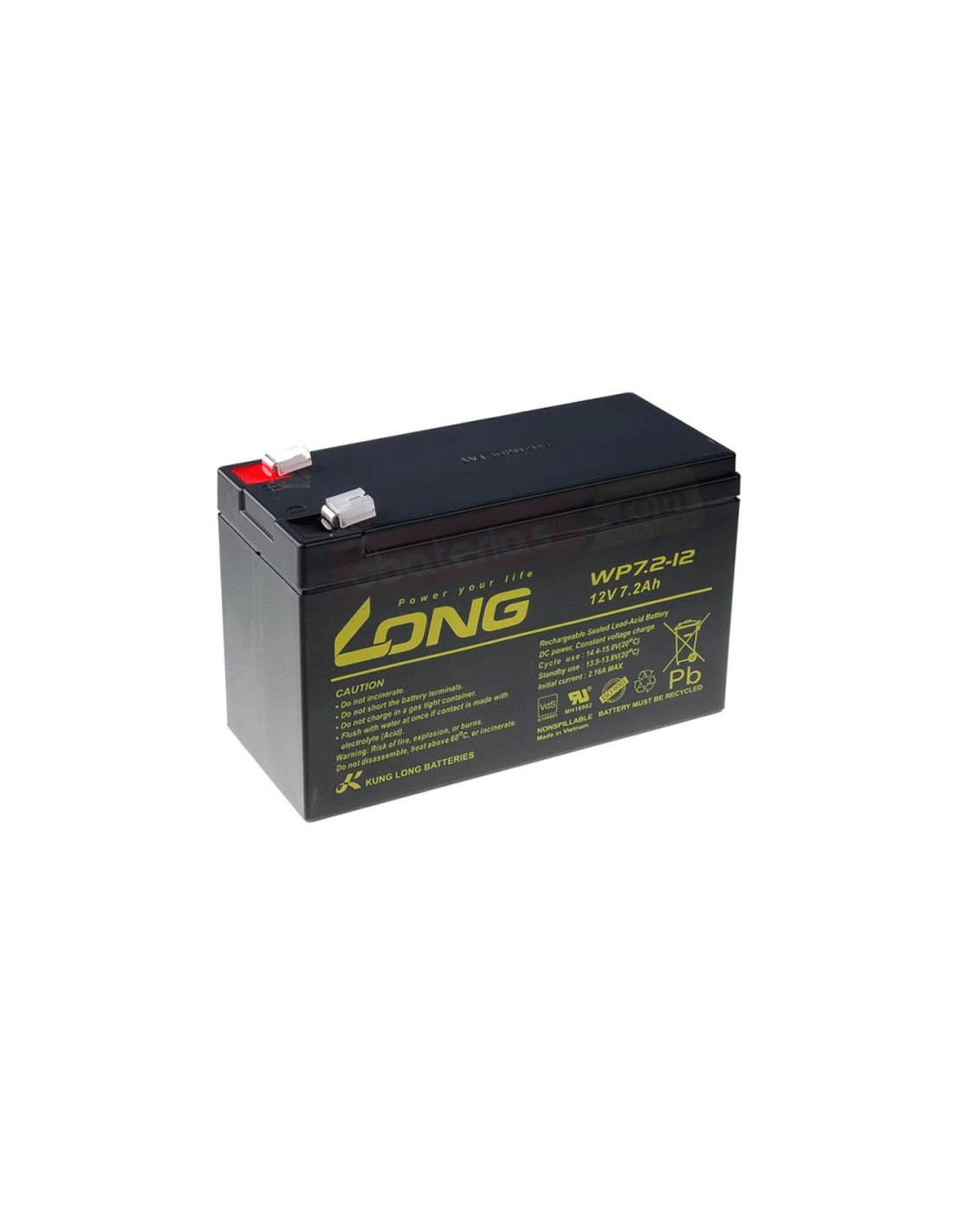 Batería LONG recambio original para 12V. y 7,2Ah. en tecnología AGM 100% hermética