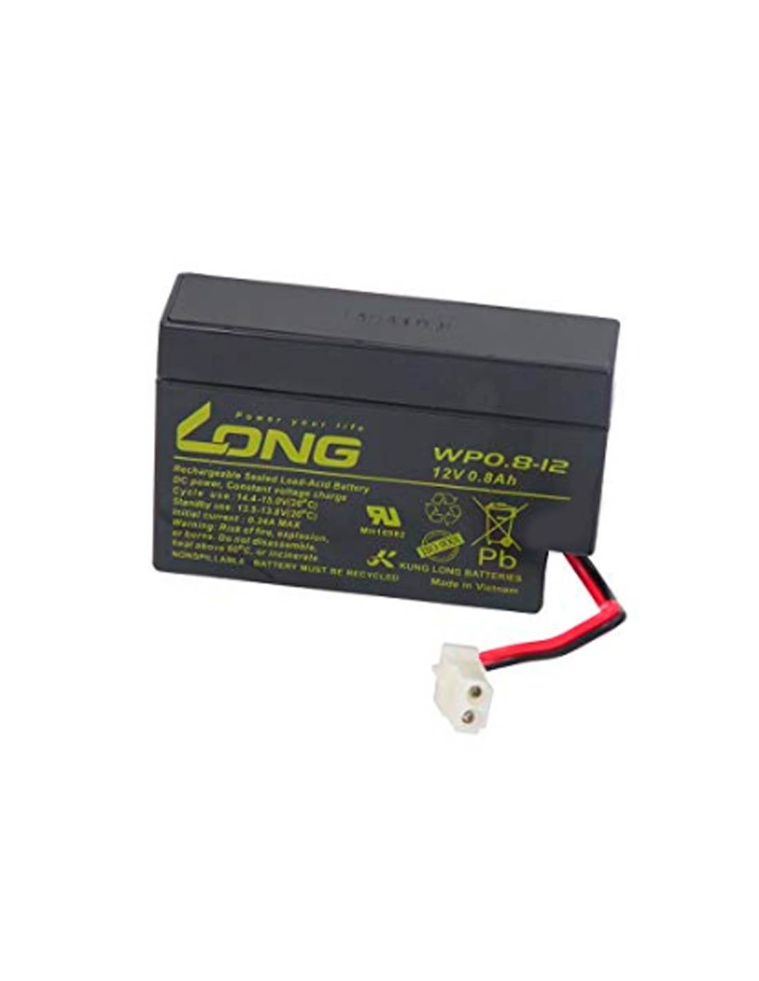 Batería de silla de ruedas 12V. 0,8Ah. LONG Características Técnicas