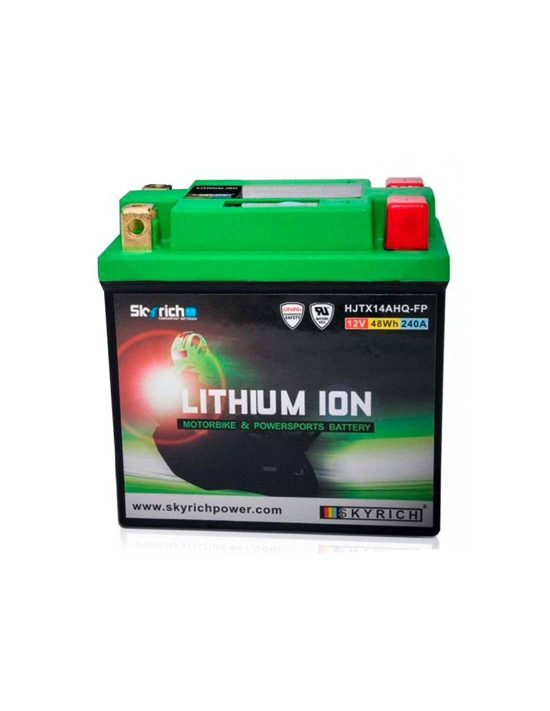 Batería de Litio para moto Skyrich HJTX14AHQ-FP 12V y 58W, especial para motocicletas, ciclomotres o scooter. Reduce peso, aumenta potencia, y evita derrames.