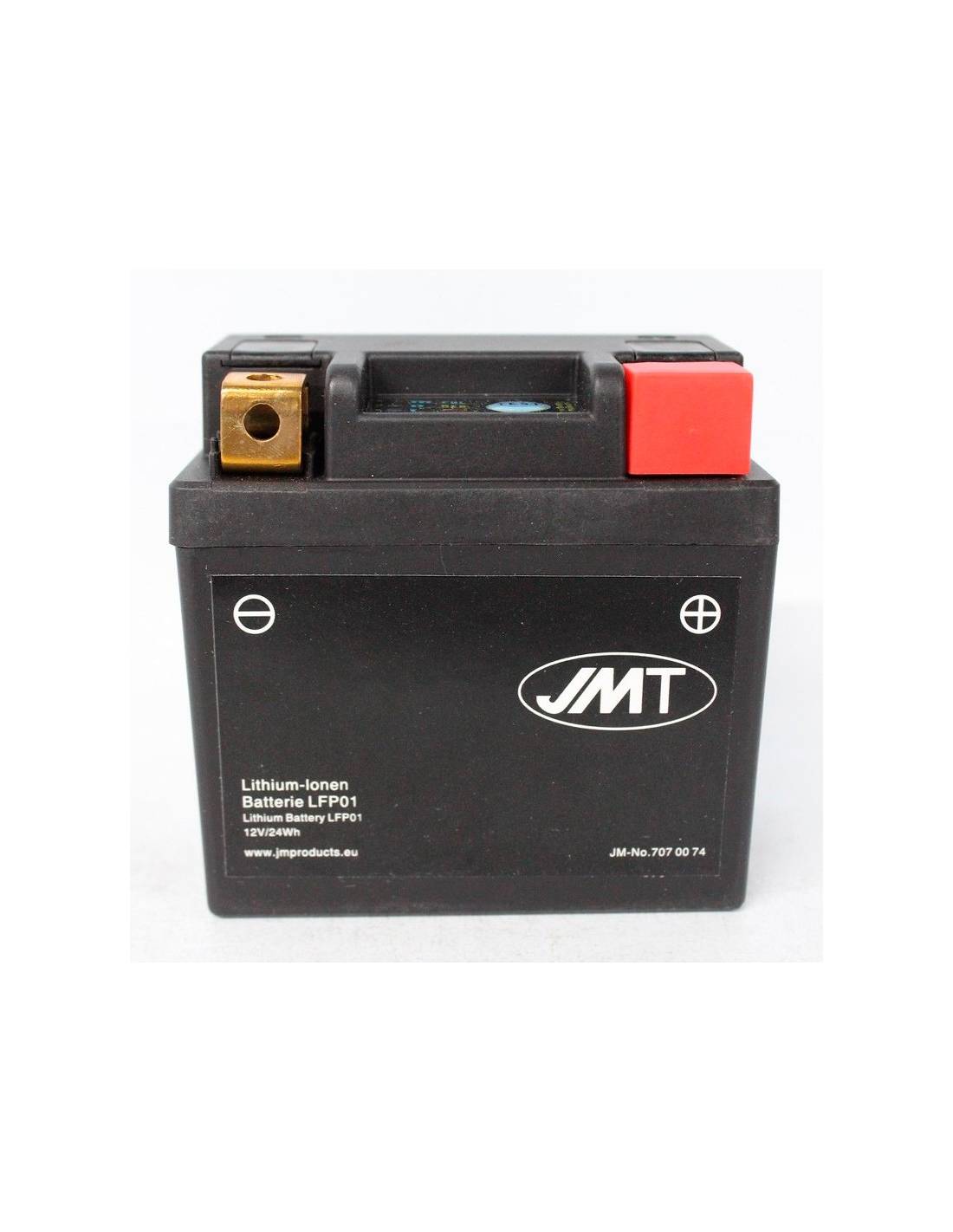 Batería JMT LFP01 12V y 24W, especial para motocicletas, ciclomotres o scooter. Reduce peso, aumenta potencia, y evita derrames.