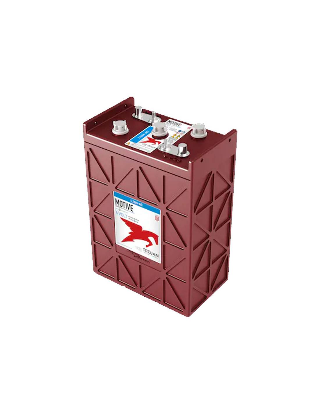 La batería trojan L16H-AC 6V 435Ah en C20, utiliza la tecnología de pasta Alpha Plus con separador Maxguard T2, es la mejor opción para aplicaciones de tracción y semi-tracción eléctrica, como coches de golf eléctricos, barredoras, fregadoras industriales, plataformas elevadoras, etc..