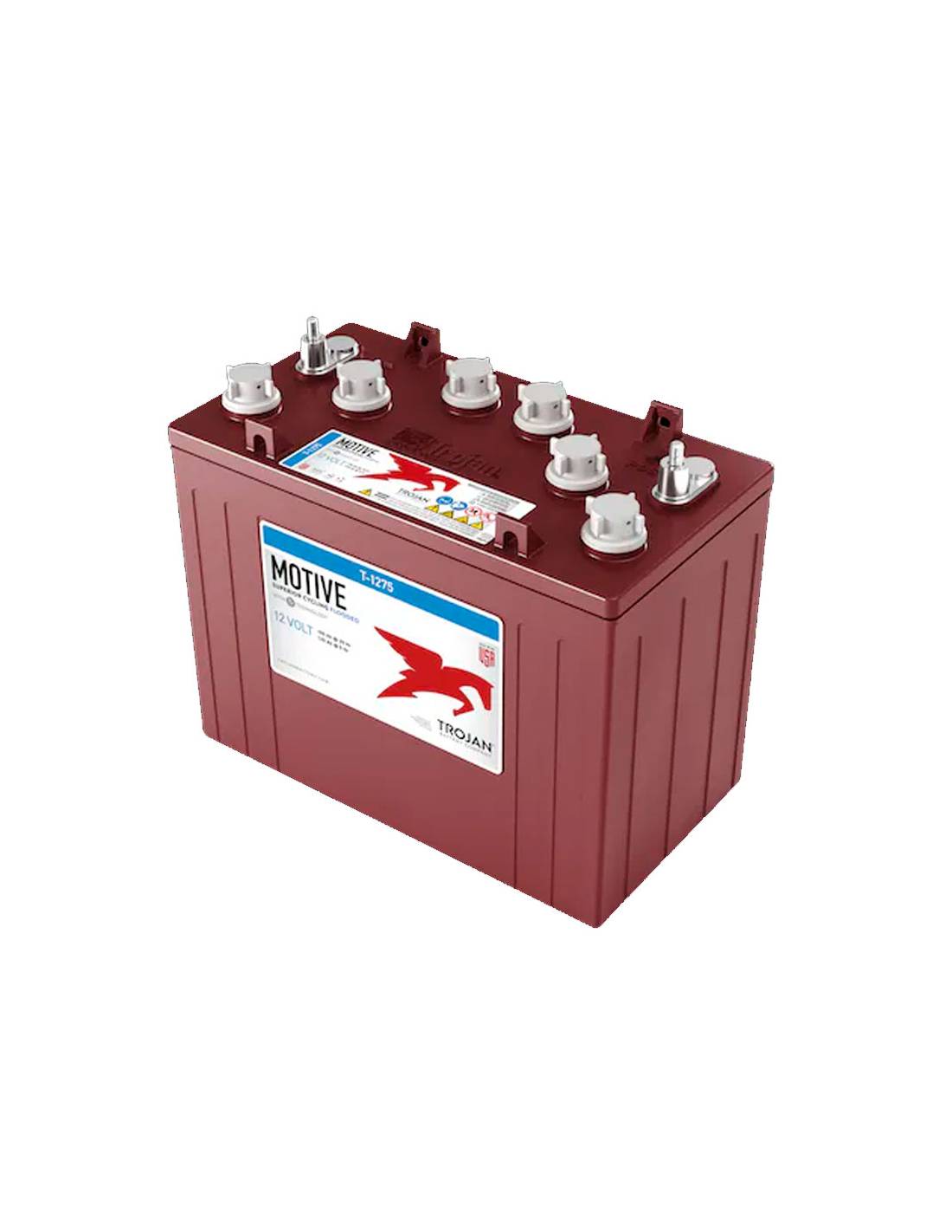 Batería TROJAN T1275 12V 150Ah en C20, utiliza la tecnología de pasta Alpha Plus con separador Maxguard T2, es la mejor opción para aplicaciones de tracción y semi-tracción eléctrica, como coches de golf eléctricos, barredoras, fregadoras industriales, plataformas elevadoras, etc..
