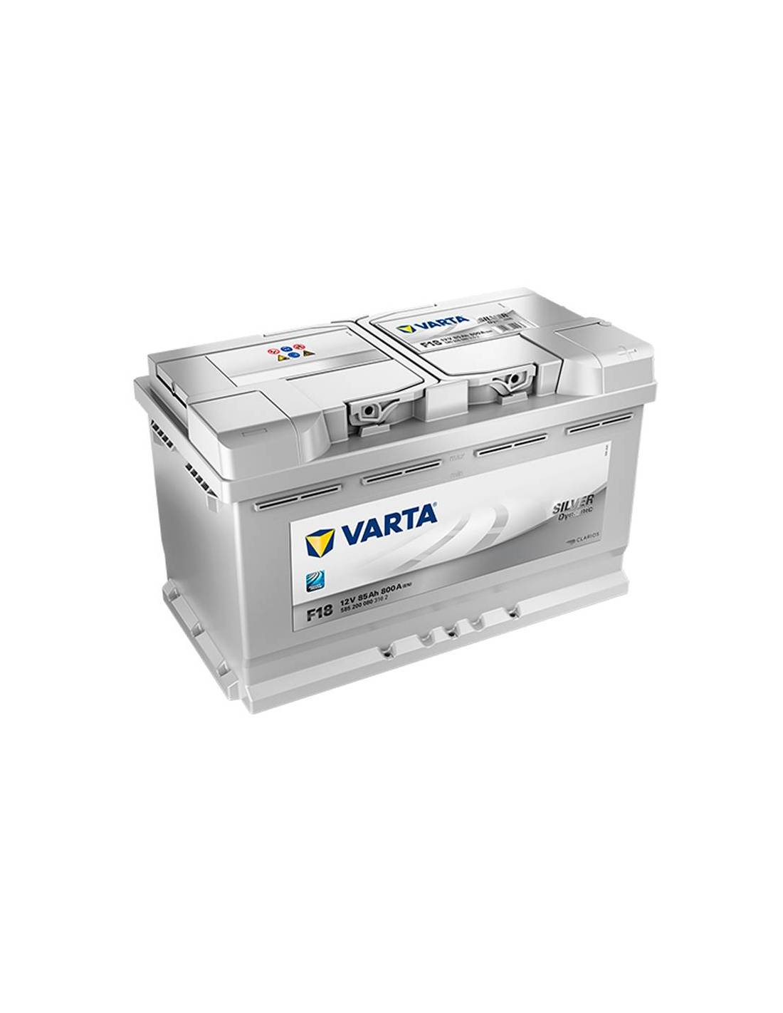 La Batería F18 Varta de la gama Silver Dynamic cuenta con un pico de arranque de 800A. con una capacidad de 85Ah. Su dimensión es de 315x175x175mm. Es una batería para el arranque de motores y es valida para muchos tipos de vehículos europeos.