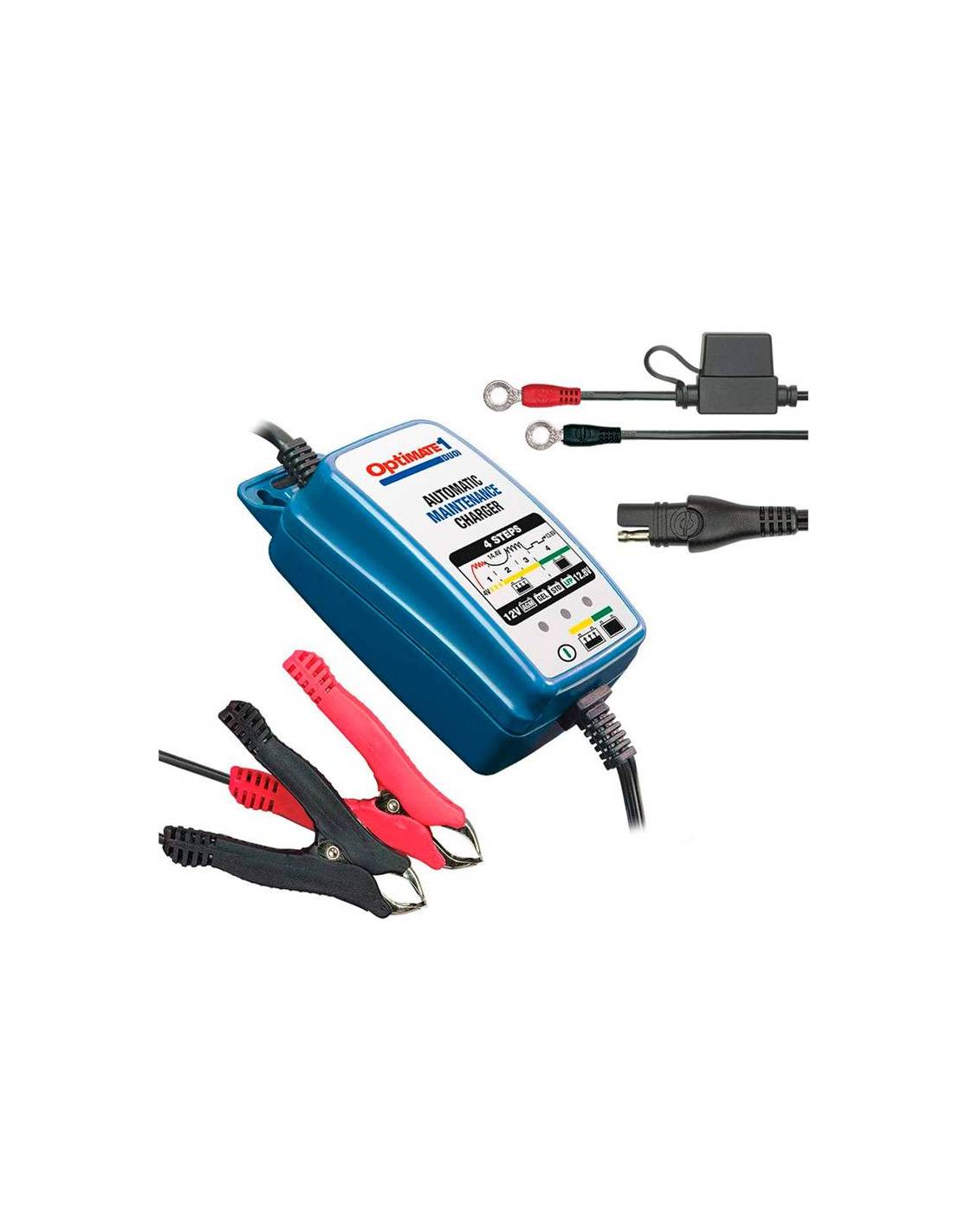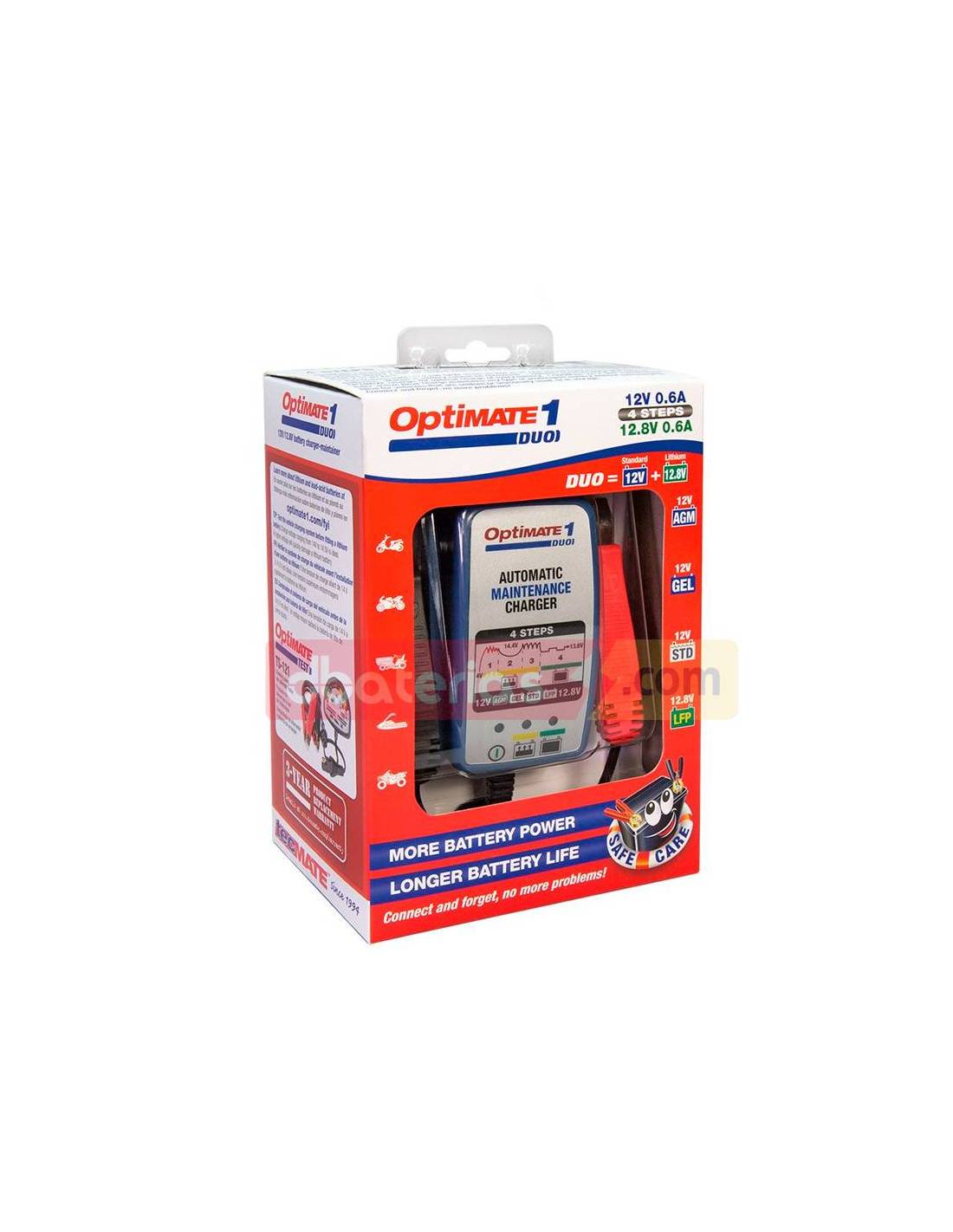 Cargador automático de baterías con función de mantenimiento Optimate 1 Duo para baterías Standard–AGM-Gel y Litio de 2 a 30Ah.