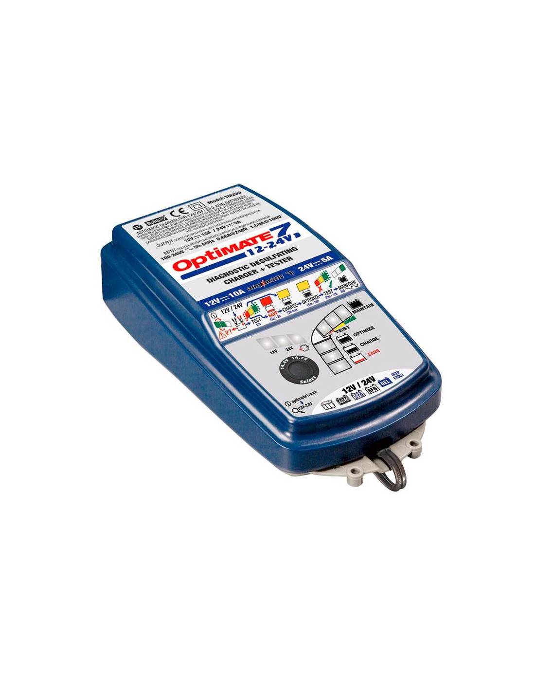 CARGADOR OPTIMATE 7 TM-260 12V/24V. Es un cargador automático y con modo mantenedor, que siempre mantendrá nuestra batería a su carga máxima, este cargador es muy utilizado en baterías de tracción, y también en el mundo de la aviación. Cuenta con modo de recuperación para baterías demasiado descargadas. Compre ahora su cargador y téngalo en 24 a 48h.