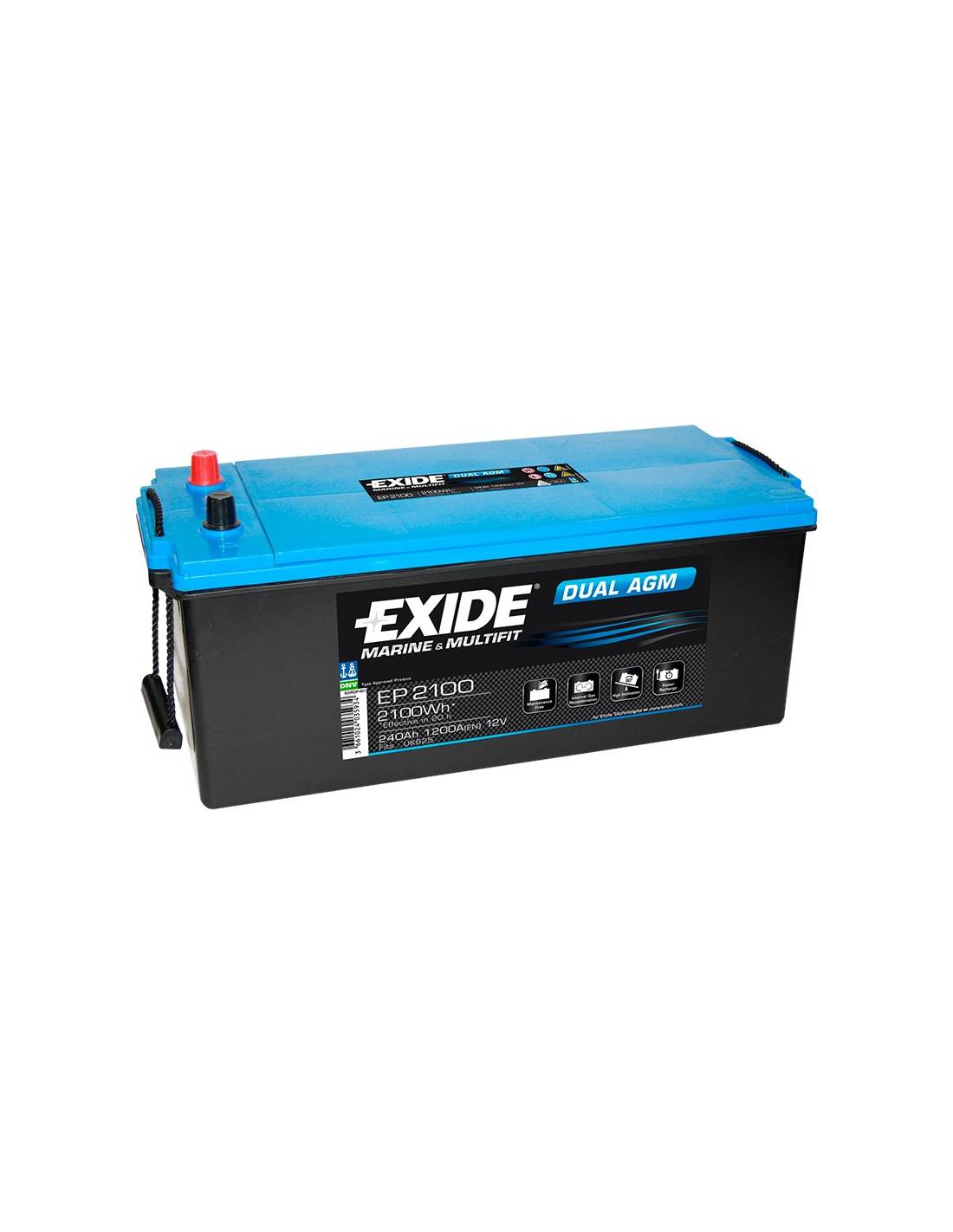 Batería EXIDE Dual AGM EP2100 de 12 voltios y 240 amperios hora en tecnología Dual AGM Sin mantenimiento.