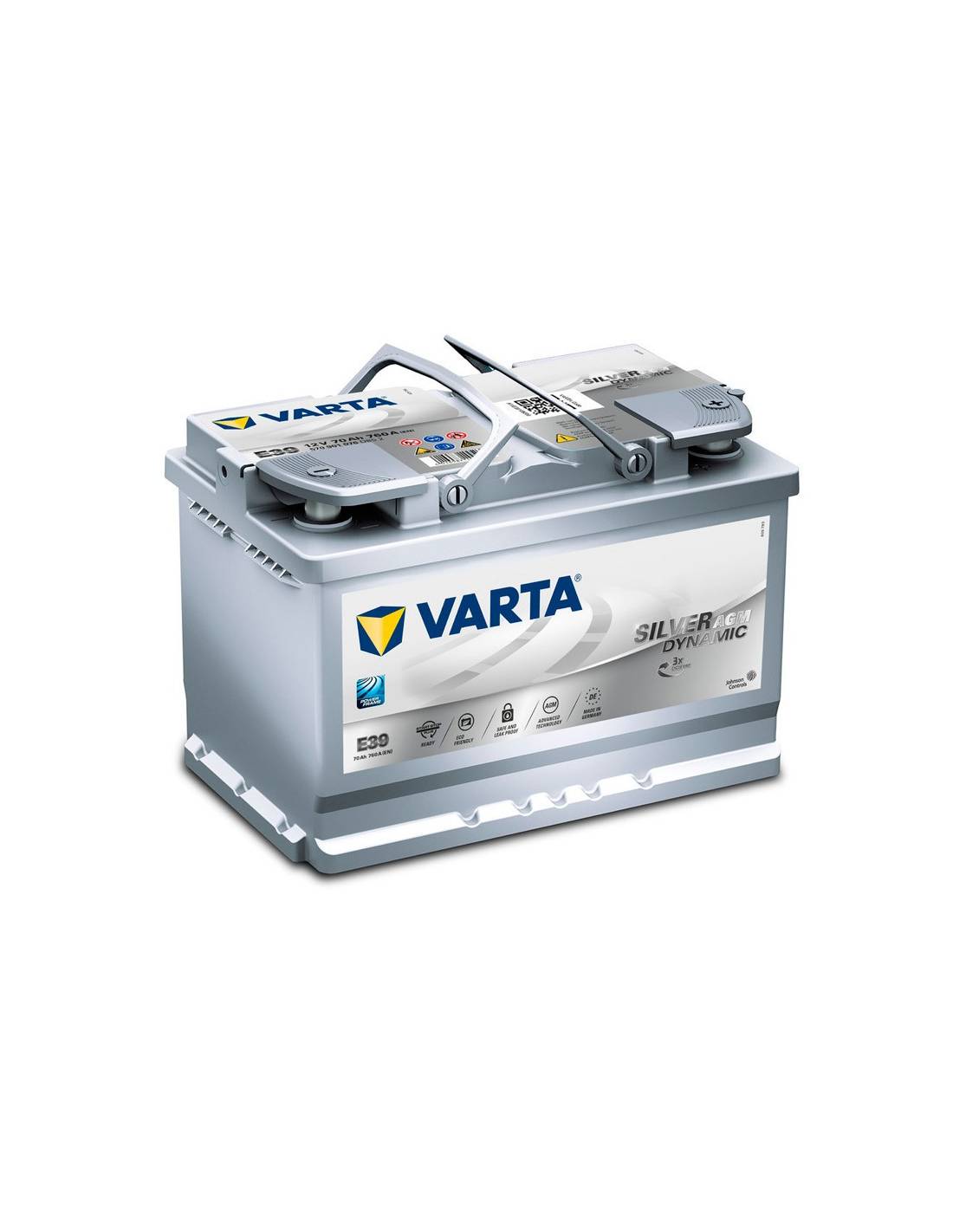 La Batería Varta E39 70Ah 12V para Vehículos Start&Stop | Silver Dynamic AGMes capaz de proporcionar energía a los vehículos y accesorios más exigentes ya que es tres veces más resistente que las baterías convencionales. Está diseñada para abastecer las grandes enormes demandas de energía de los vehículos equipados con sistemas Start-Stop avanzados, como el sistema de frenada regenerativa. Además, al estar diseñadas y producidas en Alemania, puede tener la seguridad de que han sido expresamente fabricadas para satisfacer los más altos estándares de calidad.