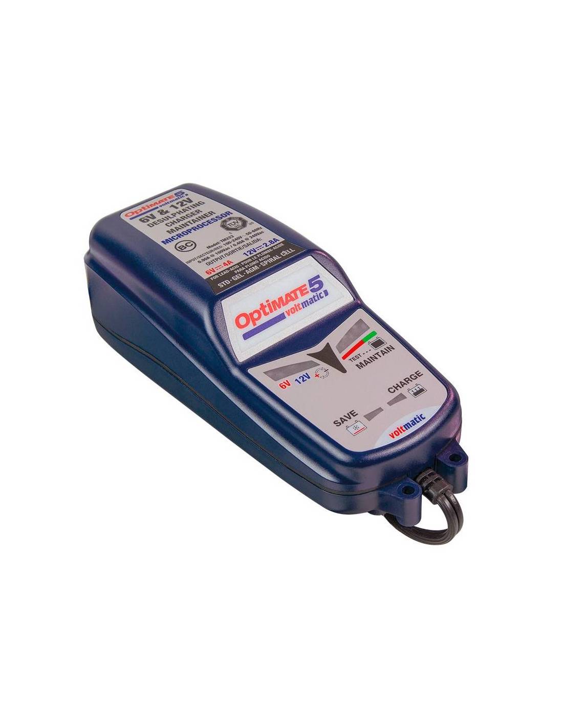 Carregador Optimate 5 Voltmatic, é um carregador avançado de última geração para baterias de 6 e 12 Volts, bastando conectar o carregador às baterias, o microprocessador Voltmatic seleciona automaticamente a tensão de carregamento correta para baterias de 6V em qualquer estado, ou para Baterias de 12V em boas condições e o carregamento começa.