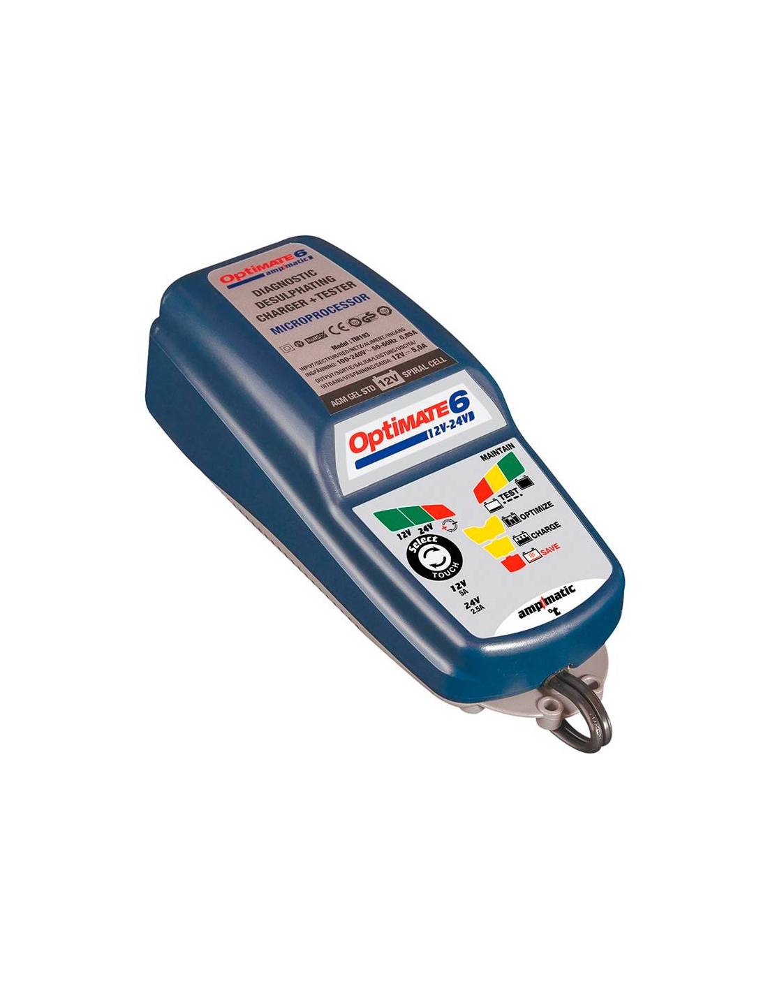 O carregador Optimate 6 é um carregador avançado de última geração para baterias de 12 V. Simplesmente conectando o carregador às baterias, o microprocessador Voltmatic seleciona automaticamente a tensão de carga correta para as baterias em qualquer estado.