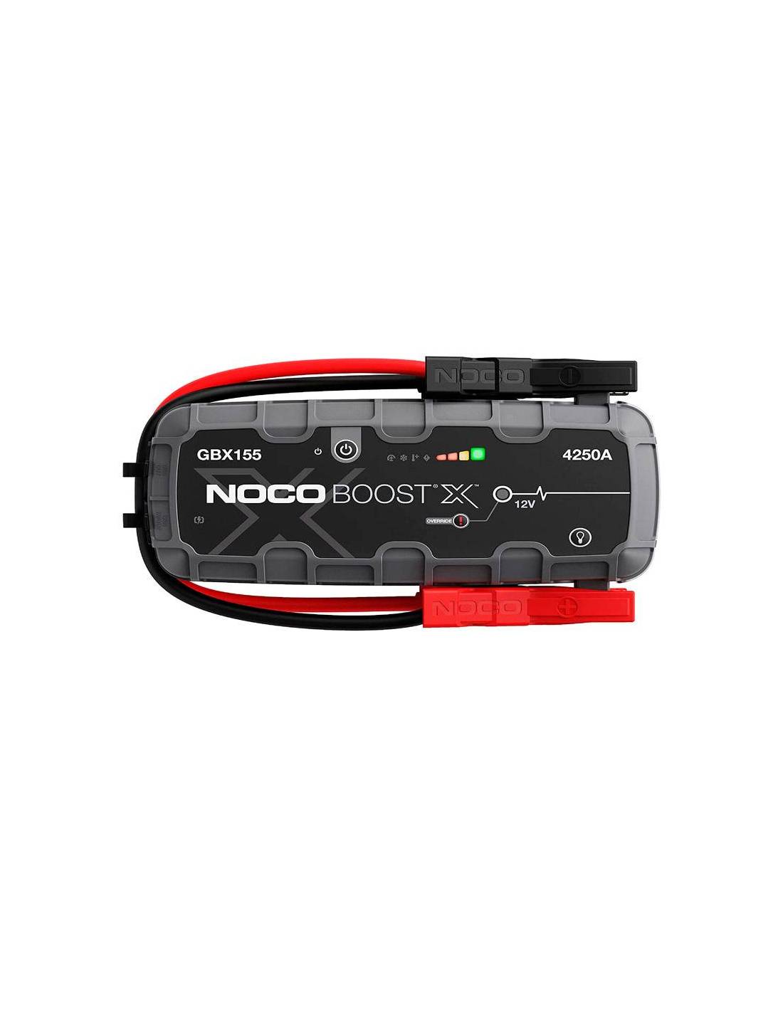 NOCO Boost X GBX155 é um starter portátil de lítio para baterias de 12 volts em veículos de até 10 litros de gasolina e 8 litros de motores a diesel, incluindo carros, motocicletas, caminhões, ATVs, barcos, RVs, caminhões, SUVs, tratores e muito mais.